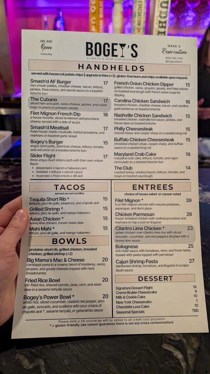 If you’re browsing Bogey’s Menu at 501 Pitman Rd, Sewell, NJ 08080, you’re in for the kind of lineup that makes it hard to decide what to order. The selection feels familiar in the best way - classic comfort dishes, stacked sandwiches, hearty burgers, and plates that actually satisfy. It’s the sort of menu you scan once, then go back and read again because something new catches your eye.